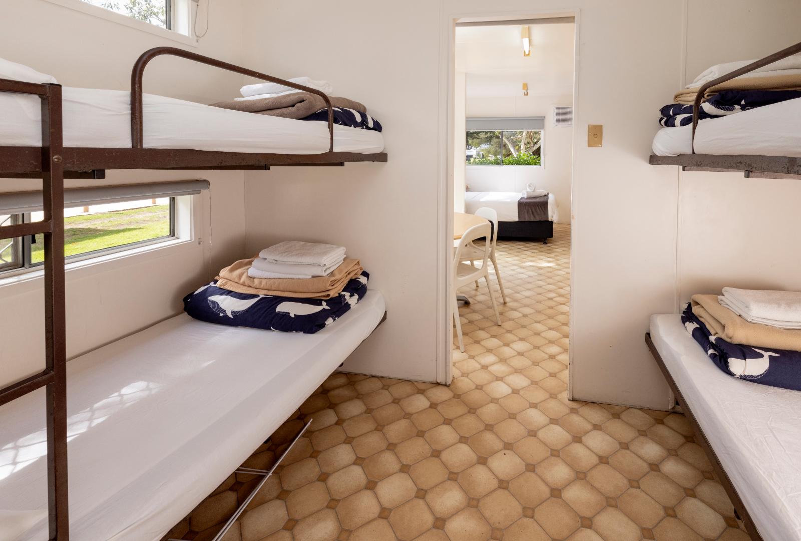 Perfect for six, our Budget Cabin is an excellent choice for your Port Elliot getaway! This cabin features a double bed in the main bedroom and two sets of bunk beds in the second bedroom. It includes a kitchenette with a bar fridge, microwave, and ample crockery and cutlery, plus a TV in the living area. The bathroom has a shower, toilet, and vanity, and the cabin is air-conditioned for your comfort. As a budget-friendly option, this cabin allows you to save on accommodation and spend more on exploring the area and enjoying local dining. It offers a great balance between relaxation and adventure while staying within your budget. We’re happy to accommodate your furry companions with our dog-friendly cabin options. Just let our Reception team know when booking your stay as additional charges may apply.